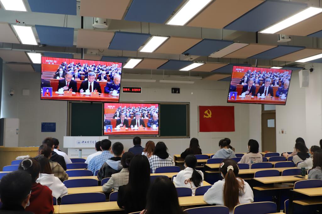 10月16日上午,污污漫画 党委组织全院党员师生观看了中国共产党第二十次全国代表大会开幕会直播。污污漫画 班子成员及全体行政支部和学生代表于学院二办301线下集中观看本次直播。全体2022级新生分别于第三教学楼A202、A203、A204和A208观看,学生第一第二党支部于第三教学楼A103观看,其余党支部和班级组织集体线上观看。