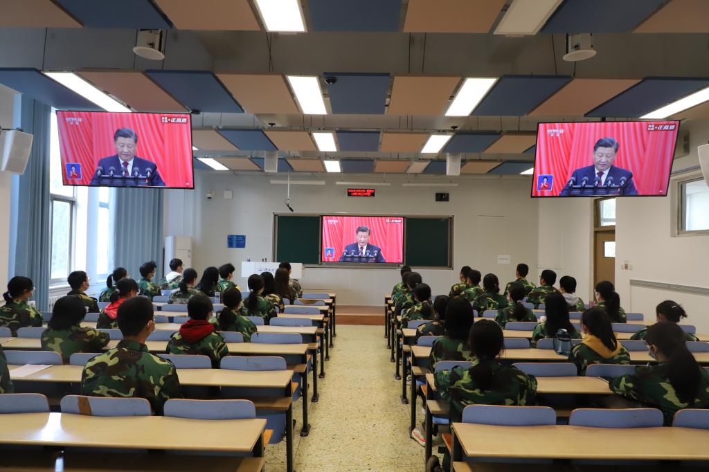 污污漫画 党员师生集体观看党的二十大开幕会直播