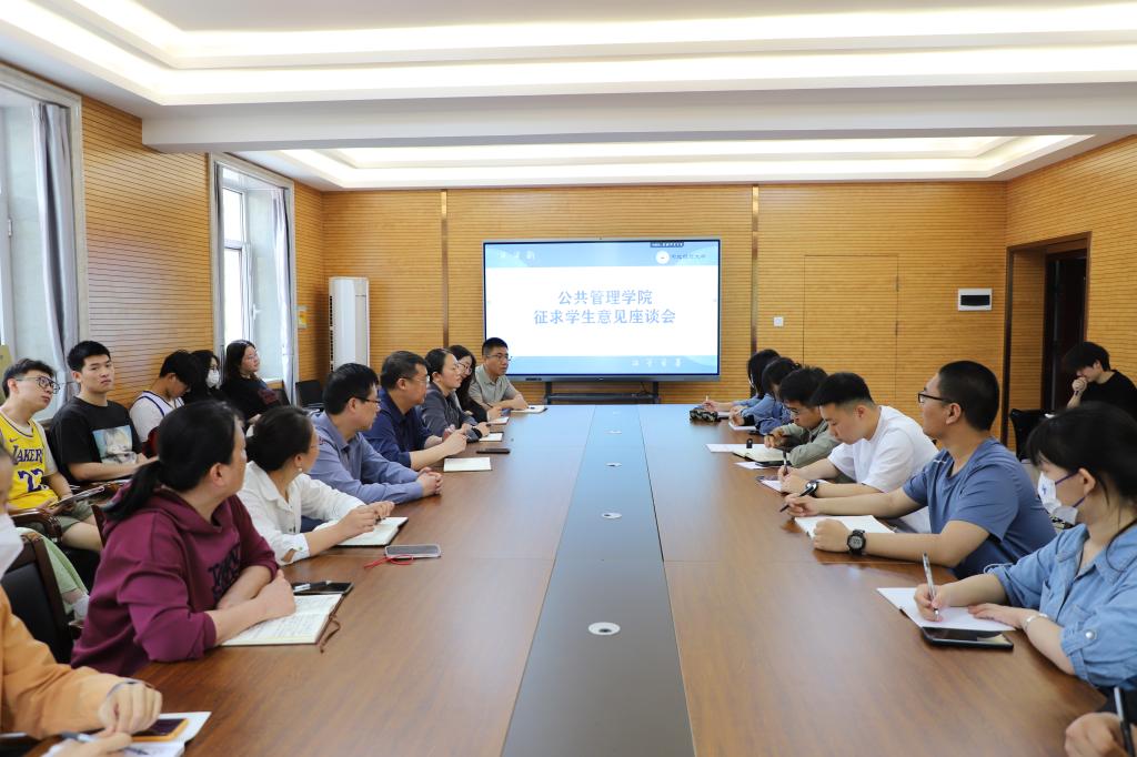 于301会议室召开征求学生意见座谈会,学院党委书记何昱、院长赵建强、副书记孟祥燕出席,全体辅导员和三十余名学生干部参加会议。
