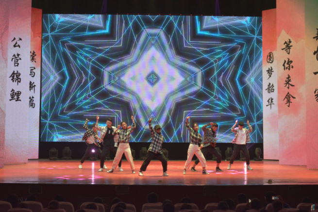 青春活力、炫酷动感的开场舞拉开了晚会的序幕;小品《手机综合症》、《公管学子》让人捧腹大笑的同时引发学生反思;相声《缘来南北》演绎宿舍成员间南北文化差异,诠释了理解的真谛;师生互动环节的默契配合,老师的机智风趣将晚会推入了高潮。