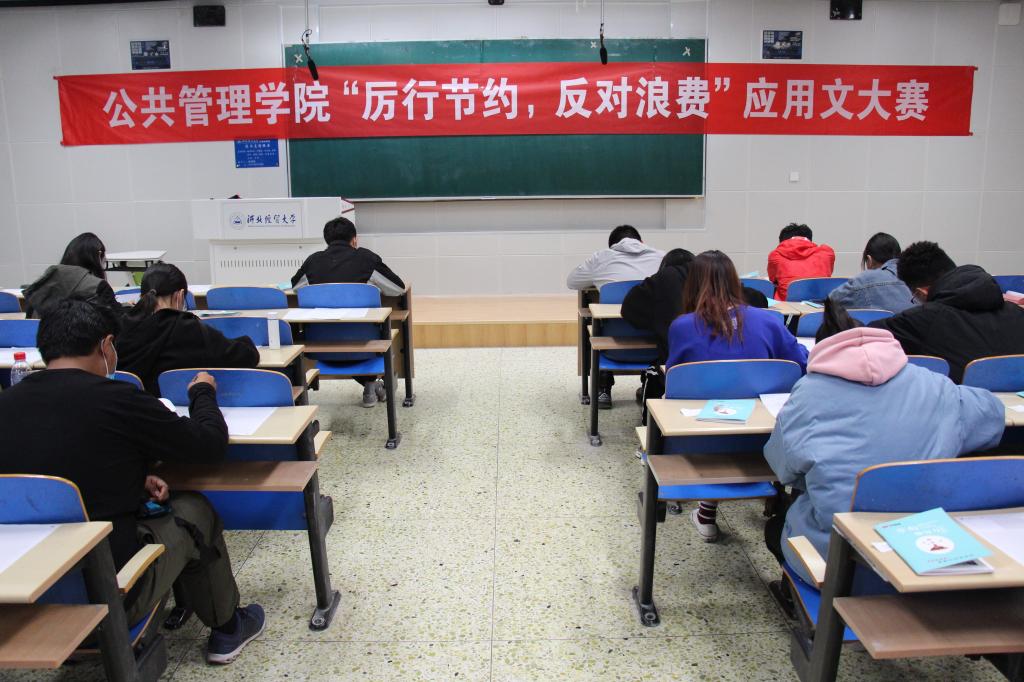 在第三教学楼B301、B303、B304教室组织“厉行节约,反对浪费”应用文大赛,学校会计学院、金融学院等13个学院共计112名学生报名参加。