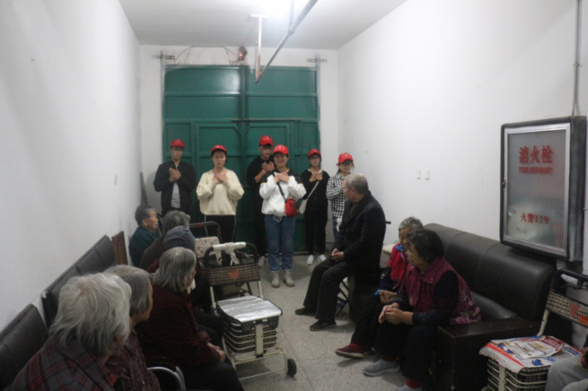 在志愿服务中,同学们分成小组与老人聊天谈心、倾听老人们的生活趣事,用真挚的问候、亲切的话语温暖老人。学生们精心准备的大合唱《国家》、手语表演《感恩的心》、舞蹈《小苹果》为老人们送去了欢笑,平日里安静的养老院笑声不断。老人们在认真观看节目的同时,也随音乐打着节拍,现场氛围温馨和谐。表演结束后,同学们还主动为老人整理房间,打扫卫生。