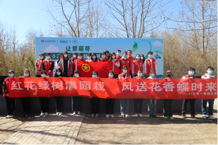 2021级土管1班团支部来到塔元庄村,开展了“红花绿树满园栽,风送花香蝶时来”植树节主题团日活动。