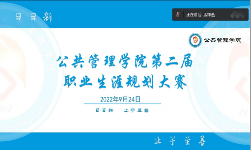 利用腾讯会议举办了第二届职业生涯规划大赛。学院特别邀请了就业指导服务中心楚晓梅老师担任嘉宾评委,学院正处级辅导员赵志川、学院党委副书记孟祥燕和专职辅导员张素桥老师共同担任评委。