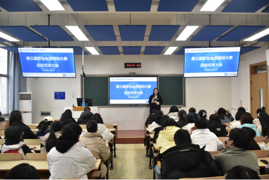 12月4日下午,污污漫画 在第三教学楼B104举办第三届职业生涯规划大赛总结交流会。会院党委副书记孟祥燕主持,全体辅导员及百余名学生参加。