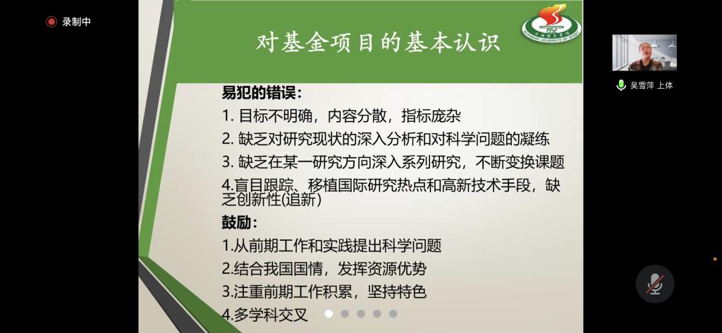 邀请上海体育学院教授、博士生导师吴雪萍通过腾讯会议做题为“申报与评审:谈如何撰写基金项目书”的学术讲座。学院教师及学生50余人参加。