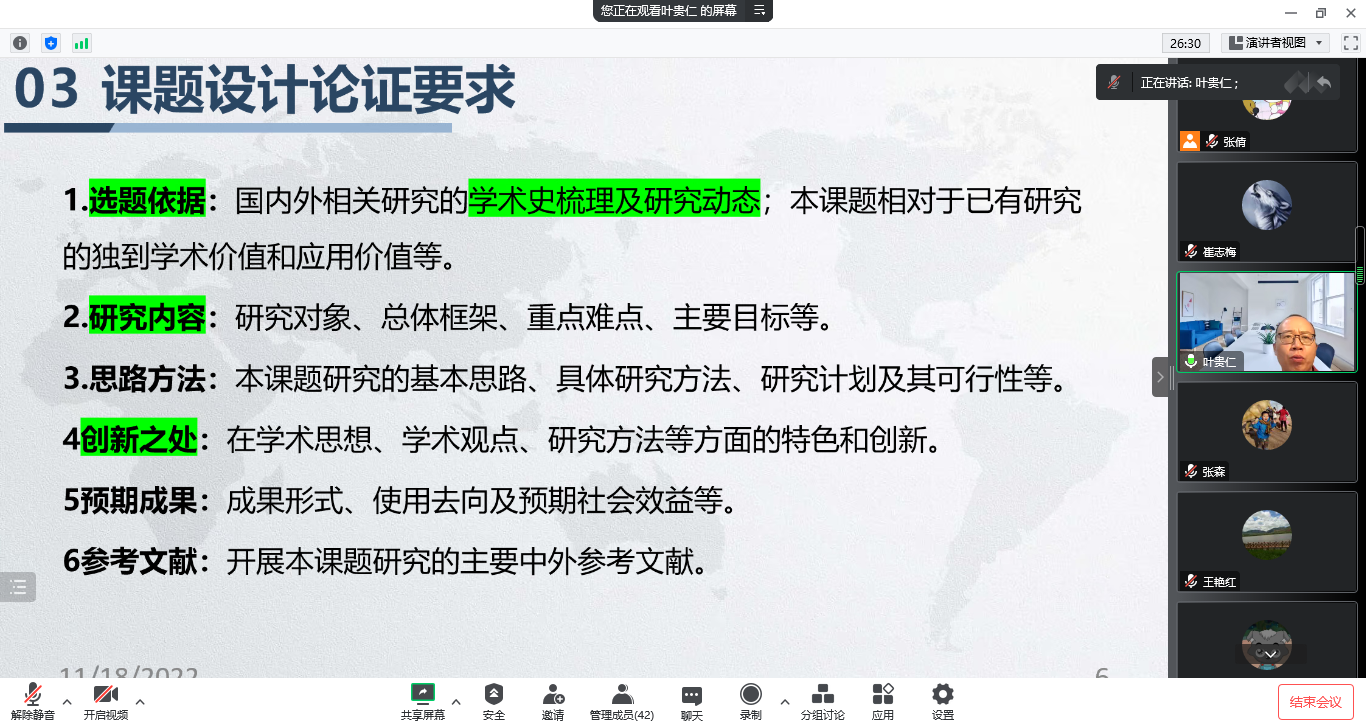 博士生导师叶贵仁教授作题为“国家社科基金申报的体会与经验”的线上学术讲座。