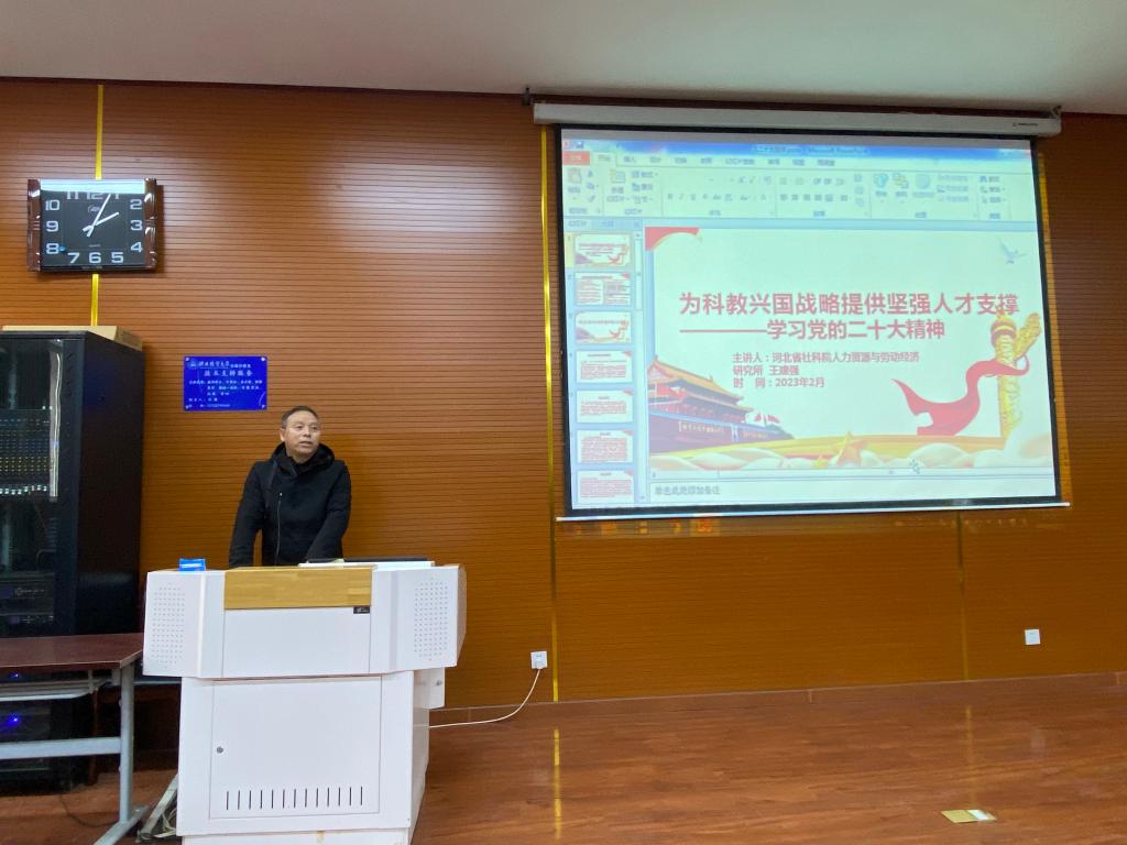 邀请河北社会科学院人力资源与劳动经济研究所所长、研究员王建强在二教105教室做《实施科教兴国战略、强化现代化建设人才支撑——学习党的二十大精神》的专题讲座,学院部分教师及研究生共100余人到场聆听,污污漫画
