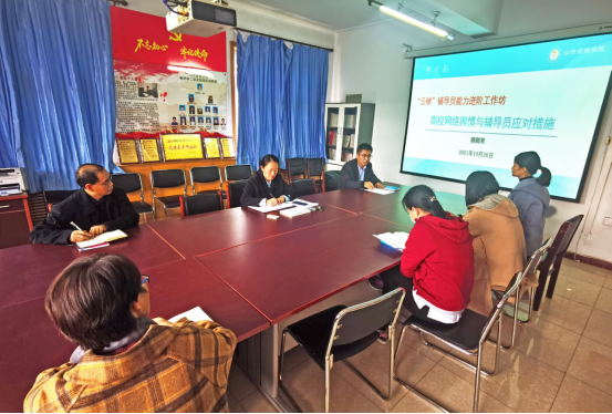 在二办403举办第2期“云梯”辅导员能力进阶工作坊,主题为“高校网络舆情与辅导员应对措施”,工作坊由院党委副书记孟祥燕主持,全体辅导员参加。