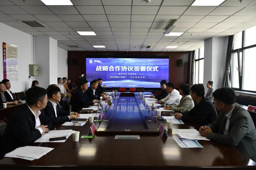 杨金田对信都区长期以来给予我校建设发展的关心和支持表示感谢。他指出,发挥专业优势服务县域经济发展一直是我校的重点工作,学校着力打造了以经济、管理、法学、信息技术等学科为主的智库平台,在产业规划、政策解读、企业咨询、人才培训等方面拥有丰富的成功经验。学校已先后与邢台市发改委和9个县区开展合作,取得一系列实践成果,希望以此次签约为契机,建立常态化联系和深度合作关系,为信都区的经济高质量发展和提升作出经贸贡献。