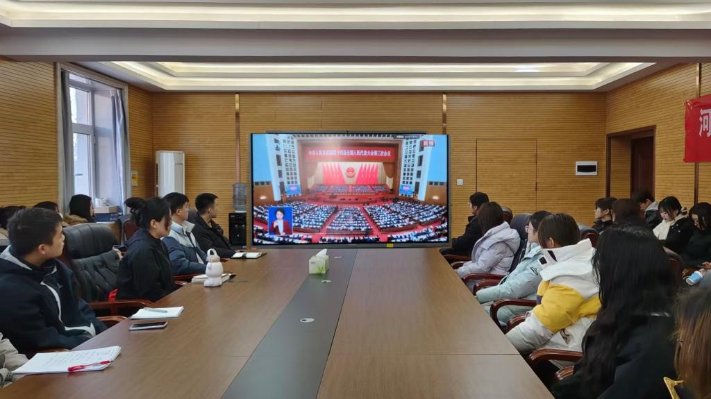 部分师生集体收看开幕会直播,及时了解两会动态,针对政府工作报告进行热烈而广泛的讨论。同时,学院各系教师、各班学生也纷纷在线上进行了同步学习。