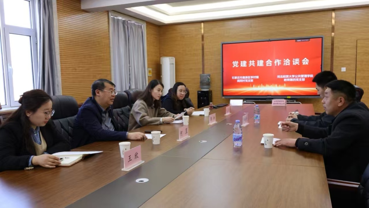 第四教师党支部与石家庄市鹿泉区李村镇阎同村开展党建共建活动。阎同村党支部书记李彦峰、党支部书记助理齐昊伦,学院党委书记何昱、副书记陈玲、教师第四党支部书记王敬、团委副书记王欣参加活动。