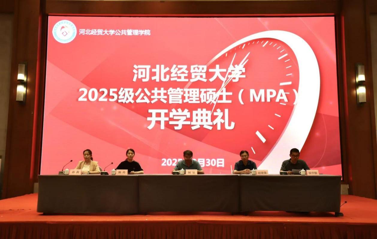 党委书记何昱、院长赵建强、党委副书记陈玲、副院长孙茜出席典礼。典礼由学院副院长张学儒主持。赵建强院长在致辞中代表全院师生欢迎2025级新生。他回顾了学院发展历程,阐释了MPA教育在国家治理现代化中的重要作用,并勉励同学们深刻领悟西柏坡精神,珍惜学习机会,不断提升理论素养与实践能力,努力成长为服务国家和社会的高层次公共管理人才。随后,教师代表张卫副教授向学员表达了祝贺,并寄语大家在未来学习中追求卓越、勇于创新。优秀在校生代表田茫与新生代表曹婵先后发言,分享了学习感悟与奋斗目标。最后,张学儒教授介绍了学院的管理制度和学业要求,为新生们顺利开启研究生生活提供了指引。