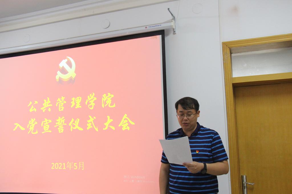 于第二办公楼401会议室举办入党宣誓仪式大会。此次宣誓仪式由党务秘书王媛主持,学院党委书记何昱、党委副书记孟祥燕及学院各党支部书记出席,51位预备党员参加本次活动。