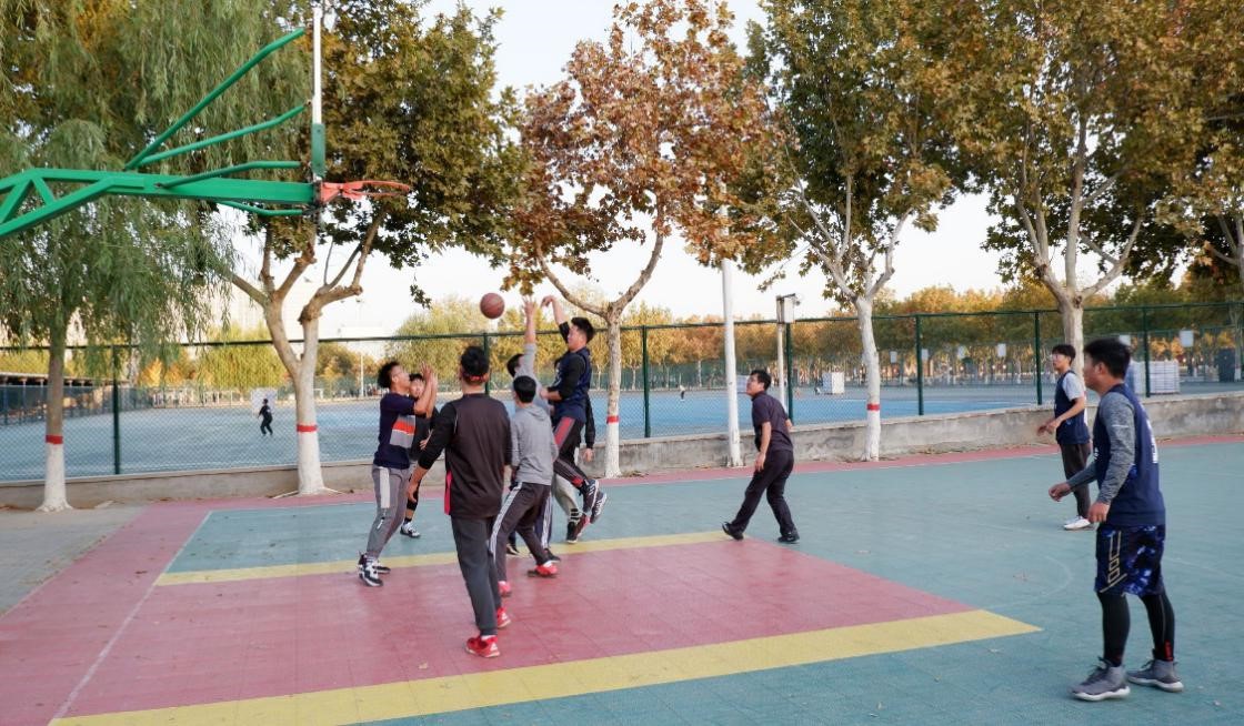 于篮球场前场举办篮球师生赛,比赛双方分别是学院副院长张学儒带领的教职工篮球队和学院男子篮球队。