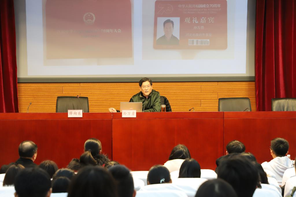 邀请河北省政府参事室特约研究员、中华文化促进会常务理事孙万勇在国际学术报告厅做主题报告。报告会由学院党委书记薛向东主持、学院团委书记张宁及200多名学生参加。