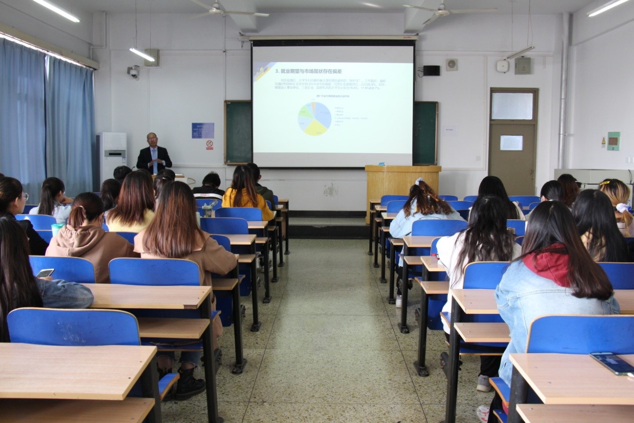 112日,污污漫画 邀请高级注册人力资源测评师、国家高级职业指导师时浩在第三教学楼C402教室作就业指导报告,污污漫画 2018级部分学生参加。