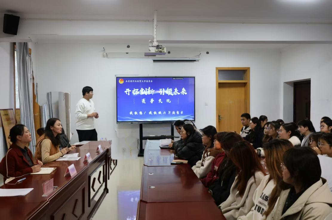 10月30日下午,污污漫画 在第二办公楼401召开科创竞赛经验分享会。副院长孙茜、教师代表王艳红和王晶,以及2025年入职的10位青年教师出席,60余名同学参加。活动由学院党委副书记陈玲主持。
